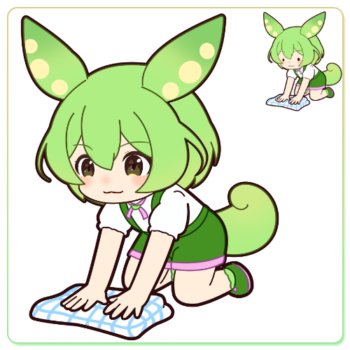 くずしてまったりと座るずんだもんのイラストです。口の差分3種×目の差分2種=6パターン用意しました。