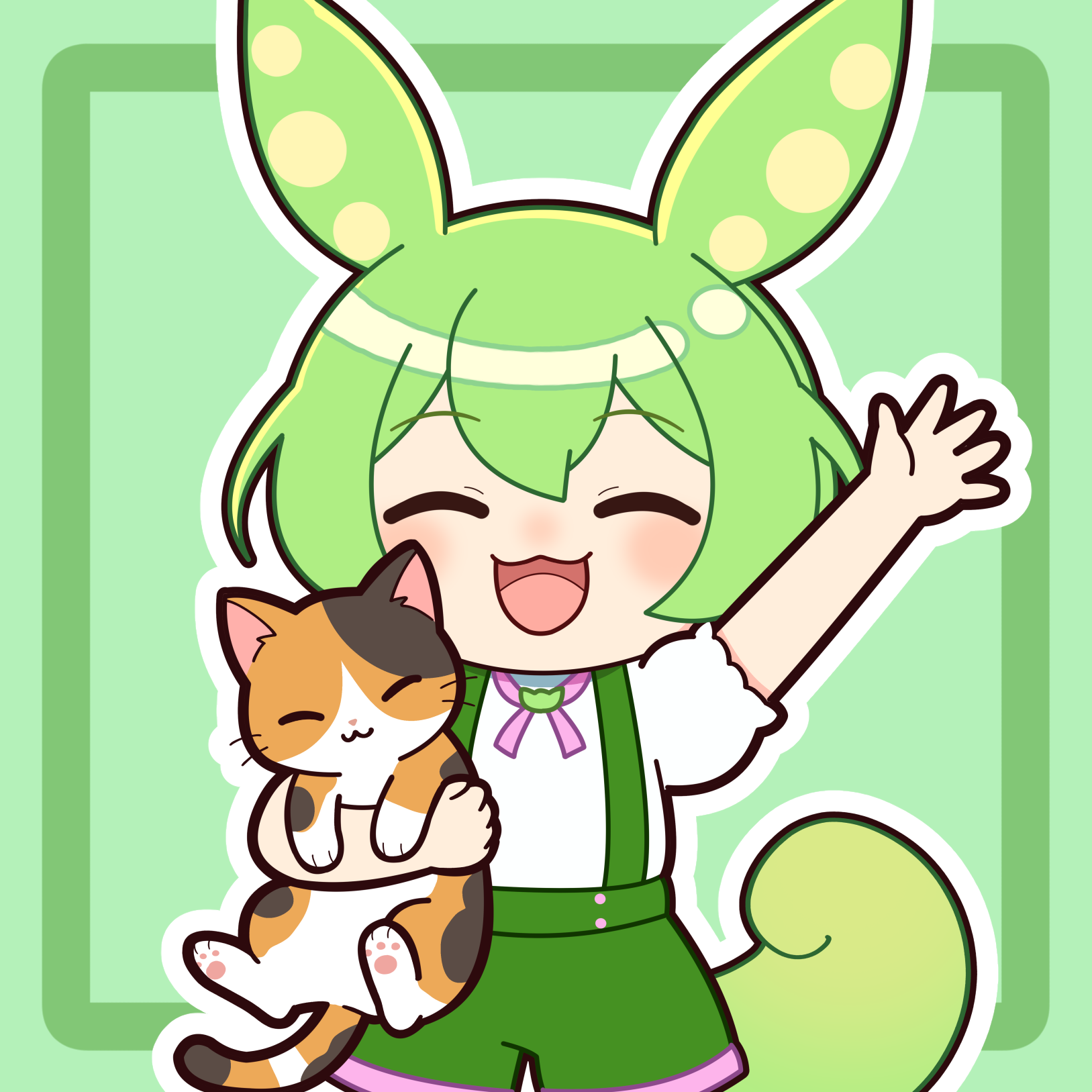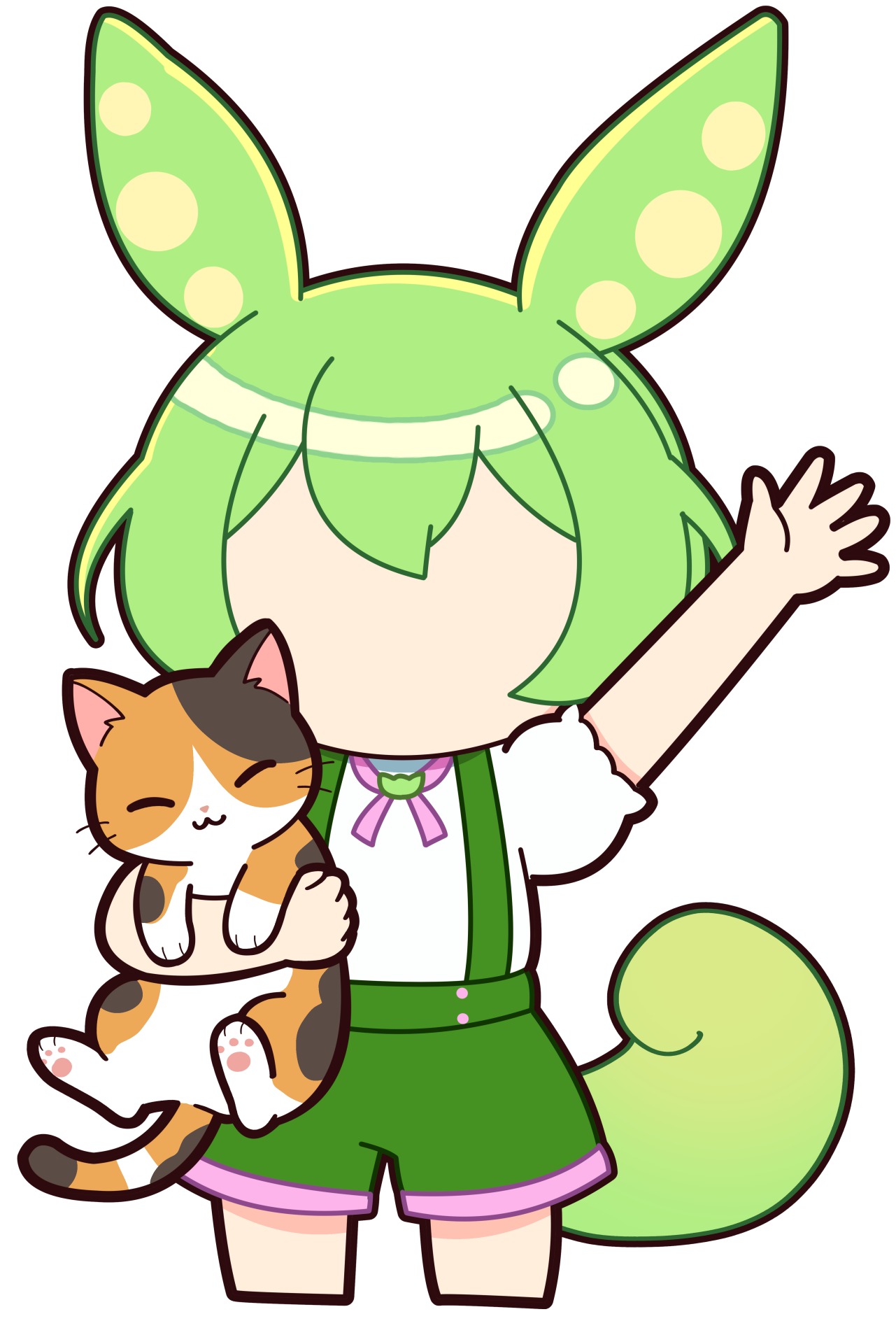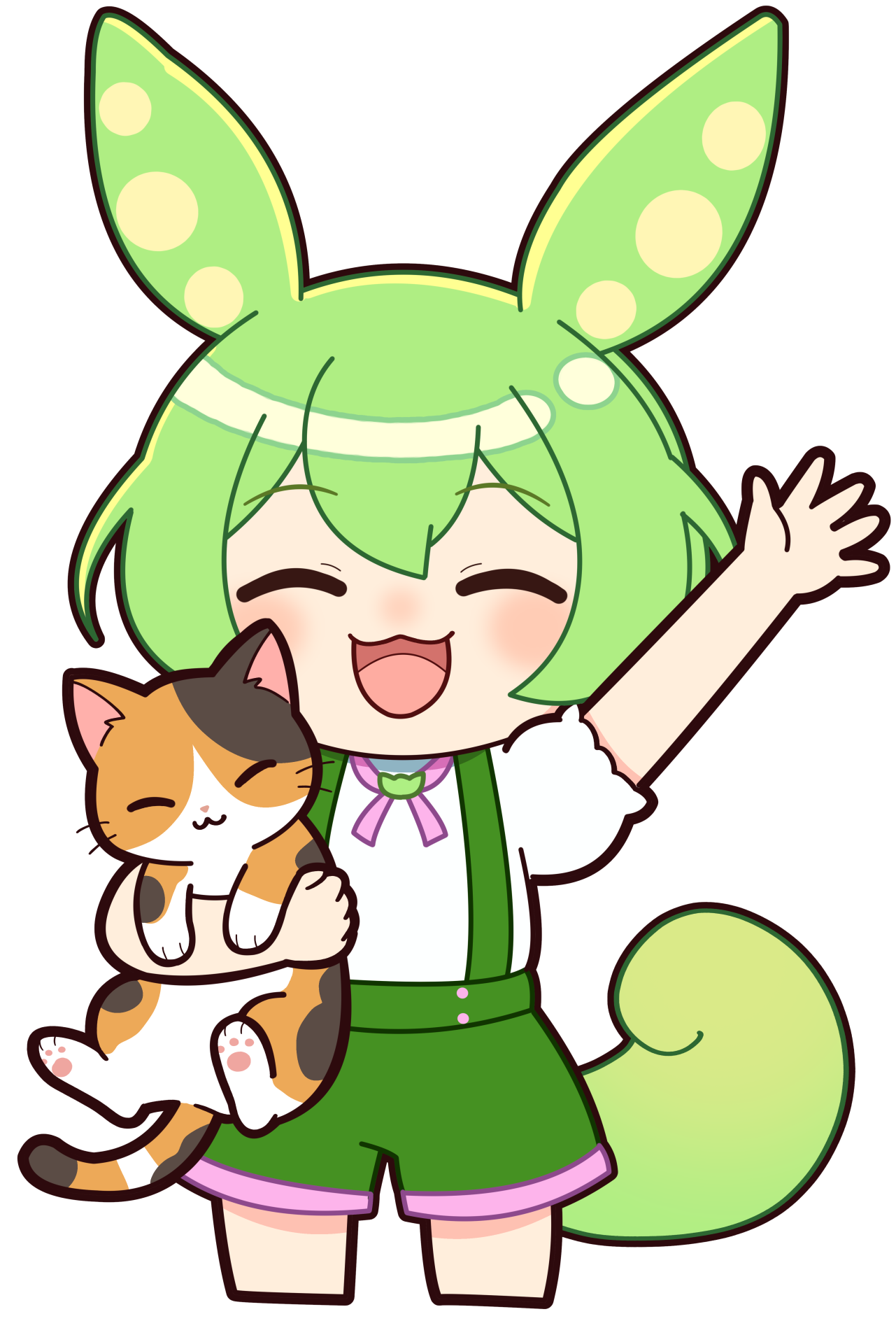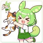 手を挙げてとっても喜ぶずんだもんのイラストです。踊っている様にも見えます。目3種×口4種=12種類の差分を用意しました。(パソコンで見た方が差分確認しやすいです) ...